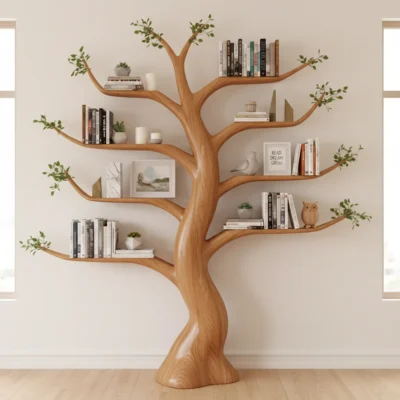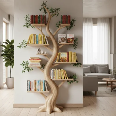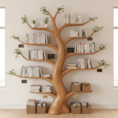 Tree bookcases give you more than just storage — they offer a chance to turn your book collection into a form of personal art. With a little creativity, you can make each shelf feel intentional, functional, and full of character.